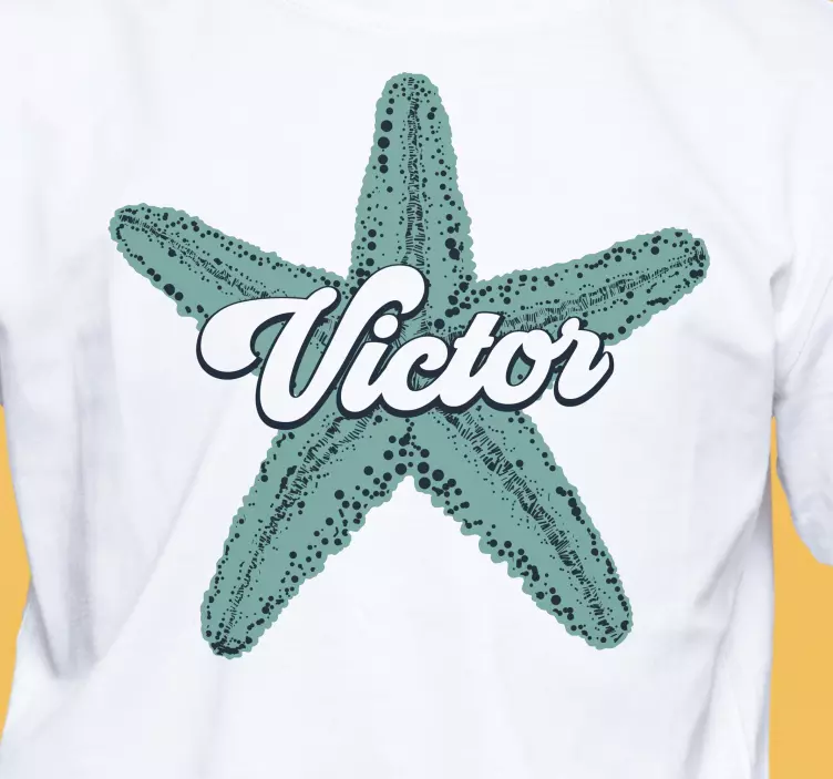 Introducing our delightful T-shirt with name starfish featuring victor, a unique blend of playful design and personal touch! This shirt showcases a charming starfish graphic that brings the essence of the ocean to life. It is custom-made with your name, making it a truly personalized piece that radiates joy and creativity!