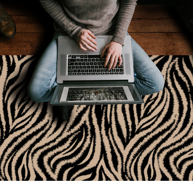 Elevate your space with our stunning Animal print vinyl rug with zebra stripe design. This captivating piece features a bold zebra pattern that effortlessly blends the essence of wildlife with modern style. The striking combination of black and beige mimics the natural beauty of animal skin, creating an eye-catching focal point in any room.