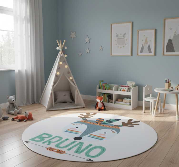 The Animal vinyl rug blue nordic deer with name animal vinyl rug effortlessly enhances your home’s aesthetic. Its delightful design invites a sense of calm and tranquility, making it an ideal addition to nurseries or playrooms. This rug is not just a decoration; it's a conversation starter that brings joy and warmth into your living space!