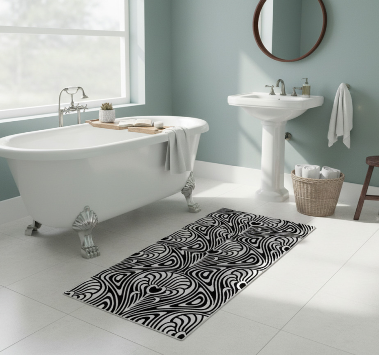 Reference: R21326Transform your bathroom into a stunning oasis with our Art nouveau bathroom vinyl rug. This exquisite design captivates with its elegant curves and intricate patterns, reflecting the beauty of the Art Nouveau movement. Crafted to seamlessly enhance your space, this bathroom vinyl rug combines aesthetic appeal with practicality, offering a delightful addition to your home.