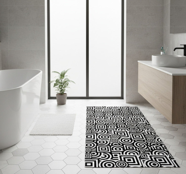 Reference: R23505Transform your bathroom with our Bathroom vinyl rug concentric design vinyl decor! This stunning piece features a captivating concentric design that adds a touch of elegance and modernity to your space. Crafted for both style and practicality, this rug embodies an array of features including easy cleaning, anti-slip properties, and scratch resistance, making it an ideal choice for high-traffic areas.