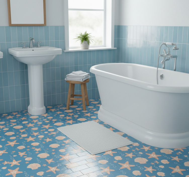 Caring for your Bathroom vinyl rug fishstar and shells under sea bathroom vinyl rug is a breeze! Simply wipe it down with a damp cloth or use mild soap for tougher stains, ensuring it retains its vibrant charm for years to come. Keep your space looking fresh and inviting with minimal effort!