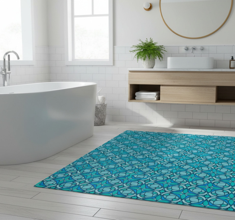 The Bathroom vinyl rug in blue bathroom wallpaper bathroom vinyl rug is more than just a floor covering; it's a statement piece that enhances your bathroom's aesthetic. With its vibrant colors and unique design, this rug adds a touch of elegance and warmth to any space. Imagine stepping onto a soft, inviting surface that not only feels great underfoot but also complements your decor perfectly. It's an effortless way to create a welcoming atmosphere!