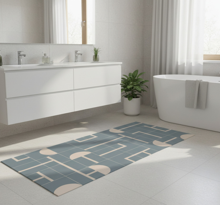 The Bathroom vinyl rug in greyish blue geometric design bathroom vinyl rug is the perfect choice for adding a touch of elegance and warmth to your bathroom. Its captivating design effortlessly enhances your decor, making it a focal point in the room. Imagine stepping onto this beautiful rug every day, turning a mundane routine into a delightful experience!