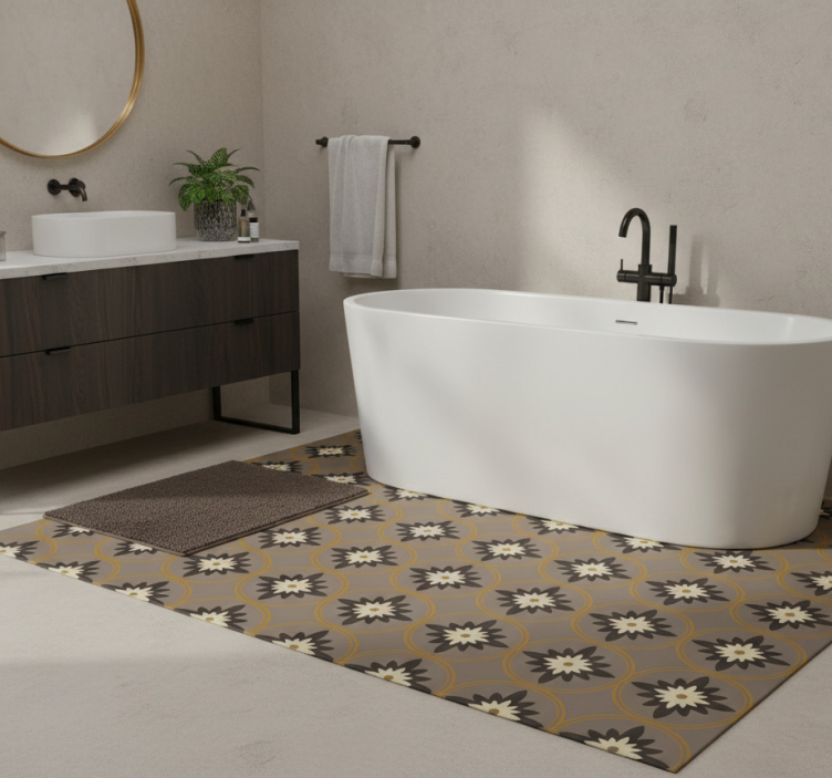 The Bathroom vinyl rug in hydraulic brown cement design bathroom vinyl rug is a perfect choice for those looking to elevate their home décor. Its unique design adds a touch of elegance and warmth, making your bathroom feel more inviting. This vibrant rug is not just a practical addition; it serves as a focal point that can transform the overall vibe of the space, inspiring relaxation and comfort.