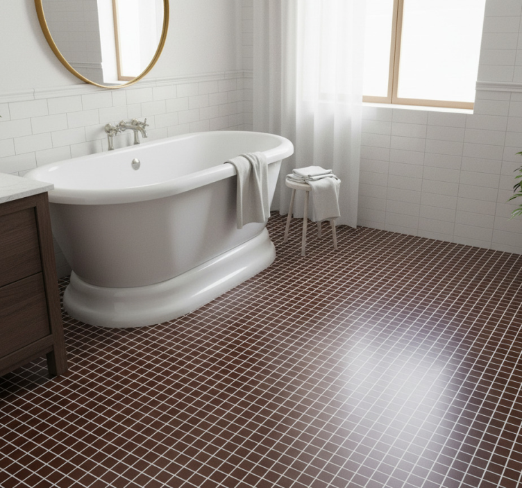 The Bathroom vinyl rug in mini chocolate brown mosaics bathroom vinyl rug is the perfect addition to elevate your bathroom's style. Its chic design seamlessly complements various themes, from modern to traditional, making it a versatile choice. By incorporating this rug, you can effortlessly add a touch of elegance and warmth, turning your bathroom into a sanctuary of relaxation!