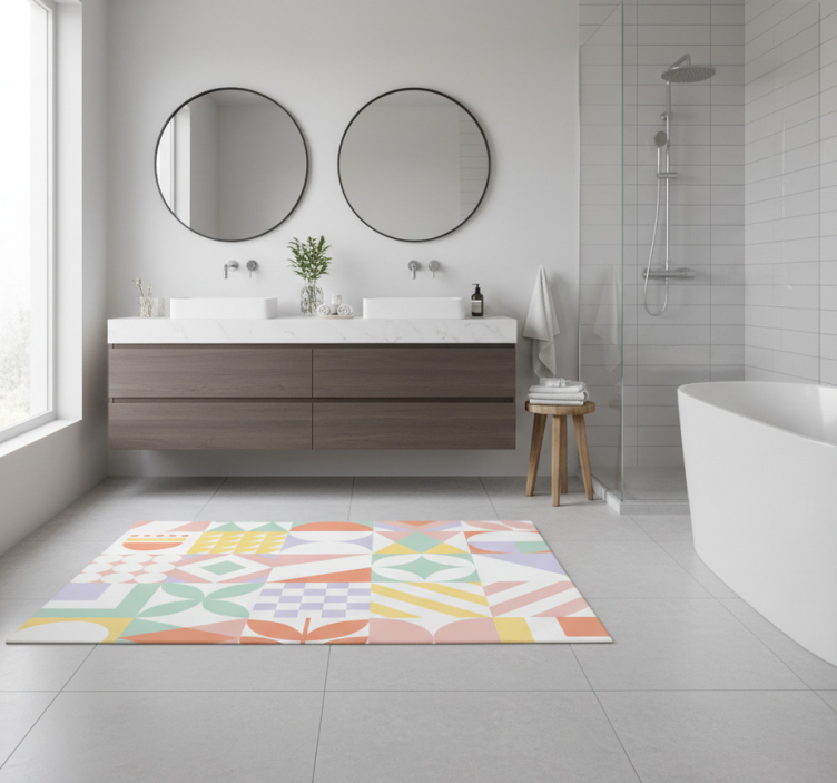Bathroom vinyl rug in unique shapes