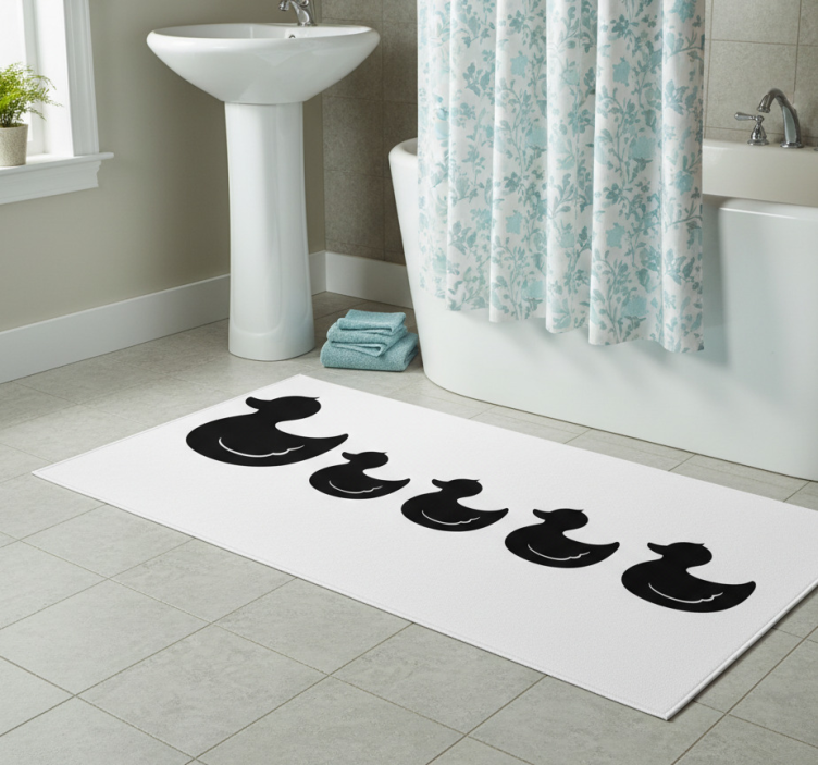 The Bathroom vinyl rug rubber duck design bathroom vinyl rug is an essential decor piece that brightens up your bathroom's atmosphere. Its charming design brings joy and a splash of color, making your daily routines feel more enjoyable. This rug effortlessly combines functionality with fun, creating a welcoming environment for both family and guests. Elevate your bathroom decor with this delightful addition!
