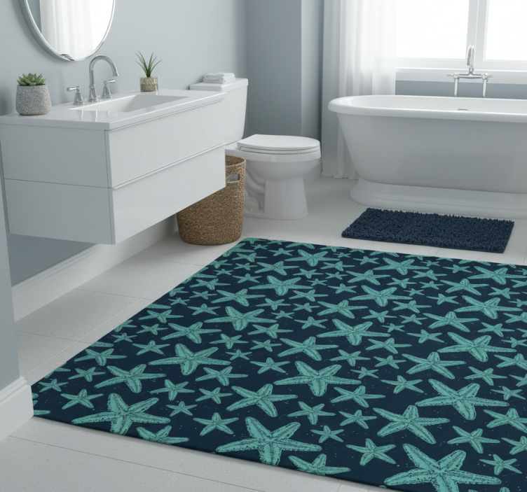 Elevate your bathroom decor with the Bathroom vinyl rug starfish bluetones design bathroom vinyl rug. This charming piece brings a refreshing touch to your space, inspiring relaxation and tranquility. Its unique design complements various styles, making it an ideal choice for anyone looking to enhance their bathroom ambiance with a splash of color and creativity!