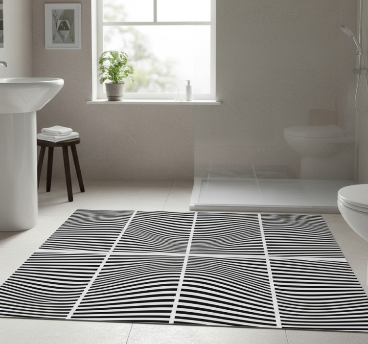 The Bathroom vinyl rug with wave pattern squares bathroom vinyl rug is not just a practical choice; it’s a design statement! Its mesmerizing wave pattern adds a dynamic visual element, evoking a sense of tranquility that enriches your bathroom ambiance. By incorporating this beautiful rug, you can create a welcoming retreat that reflects your personal style and enhances the overall aesthetic of your space!
