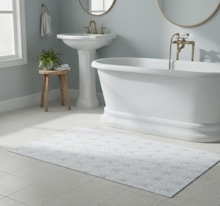 The Bathroom vinyl rug with art deco white shells pattern bathroom vinyl rug is an exquisite addition to any bathroom decor. It effortlessly elevates your space, bringing a touch of sophistication and charm. The stunning design not only enhances the beauty of your bathroom but also creates a cozy atmosphere, making it an inviting place for relaxation and rejuvenation!