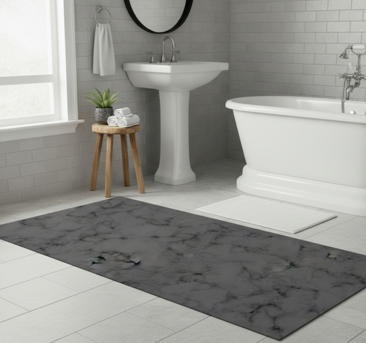 Bathroom vinyl rug with black grungy marble design