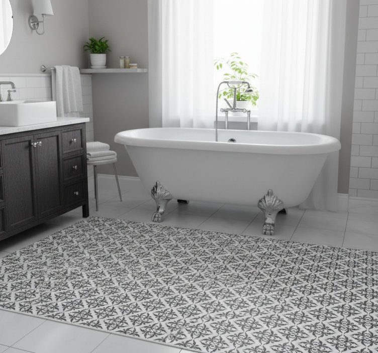 The Bathroom vinyl rug with black tile design bathroom vinyl rug is the perfect choice for those looking to elevate their home décor. Its captivating design effortlessly blends modern aesthetics with practicality. This rug not only brings warmth and comfort to your bathroom but also serves as a striking centerpiece that captures attention and inspires creativity. Let your personality shine through in your space!