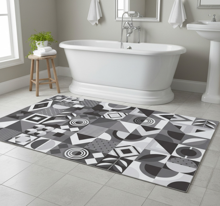This Bathroom vinyl rug in gray geometric tiles bathroom vinyl rug is the perfect choice for anyone looking to elevate their bathroom decor. Its contemporary design adds a touch of sophistication to your space, making it an ideal accent piece that draws the eye. Not only does it enhance the aesthetic appeal of your bathroom, but it also offers functional benefits, providing a cozy area for your feet while protecting your floors from moisture and wear. Embrace the elegance and charm this rug brings into your home!