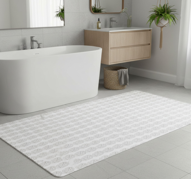 Bathroom vinyl rug with grey leaf pattern