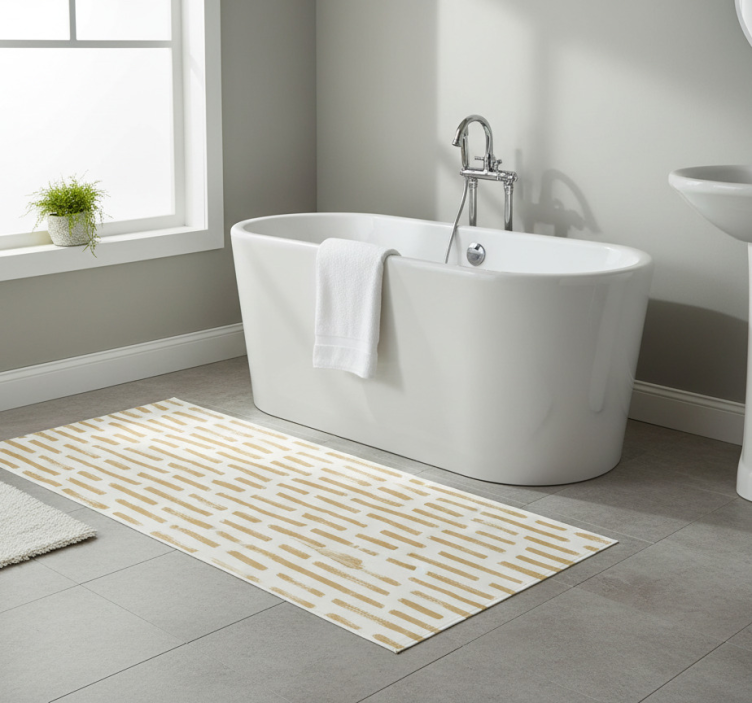 The Bathroom vinyl rug with light brown brush strokes bathroom vinyl rug is the perfect choice for those looking to elevate their home decor. Its elegant design effortlessly complements a variety of interior styles, adding a touch of sophistication and warmth. Imagine stepping out of your shower onto a soft, stylish surface that brings both beauty and comfort to your daily routine!