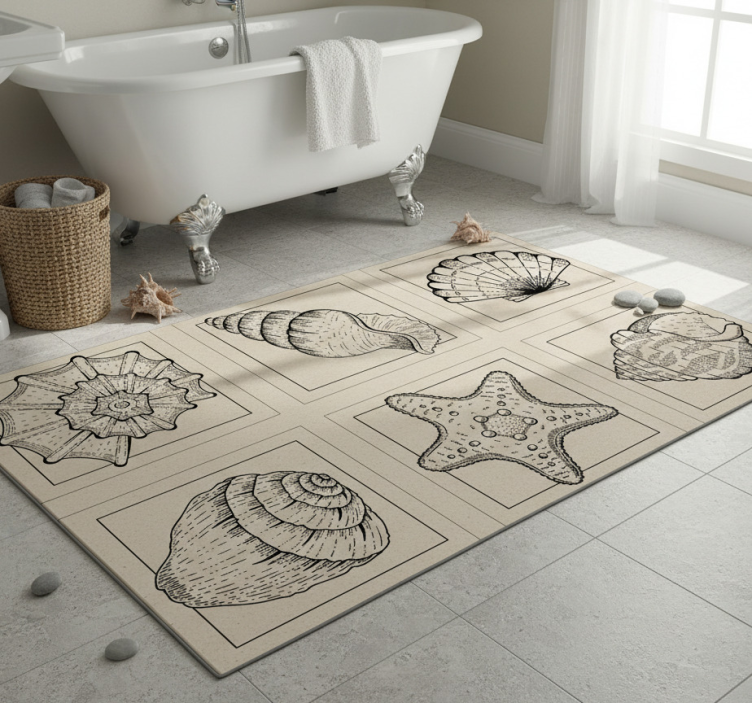 Bathroom vinyl rug with marine life and seashells
