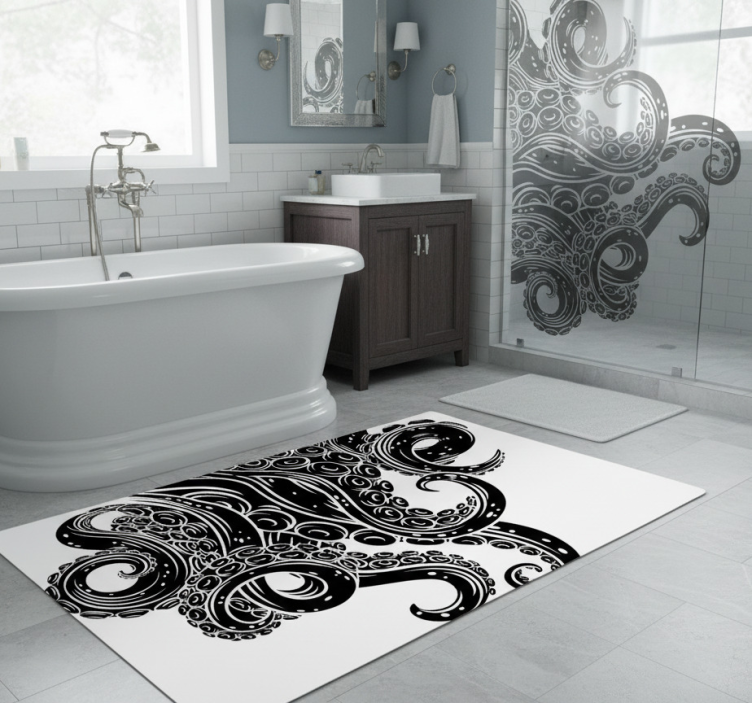 Bathroom vinyl rug with octopus tentacles design