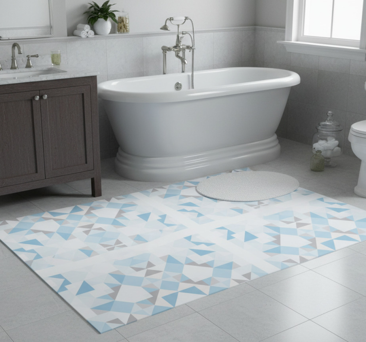 Bathroom vinyl rug with vintage blue grey tiles