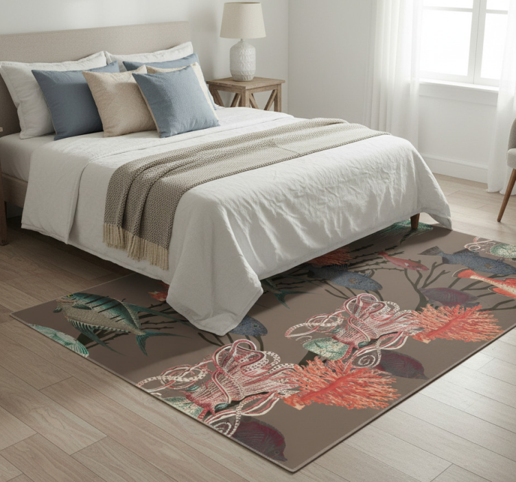 The Bedroom vinyl rug coral aquatic life design bedroom vinyl rug is the perfect choice for anyone looking to elevate their home decor. Its unique coral and aquatic motifs inspire a serene underwater atmosphere, making your bedroom a tranquil oasis. Imagine stepping onto this vibrant rug each morning, feeling the warmth and style it brings to your space. It’s not just a rug – it's a statement piece that enhances the beauty of your room!