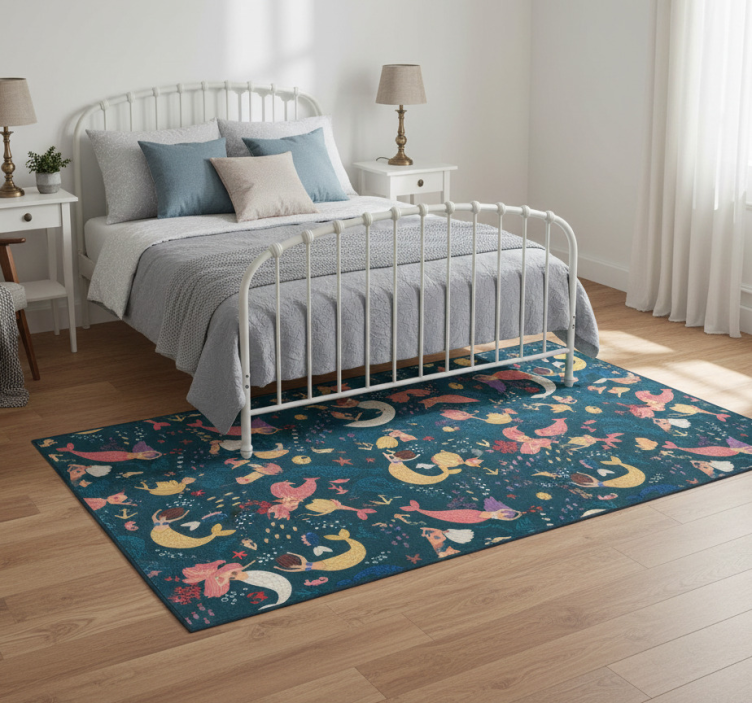 Bedroom vinyl rug dark blue mermaid design