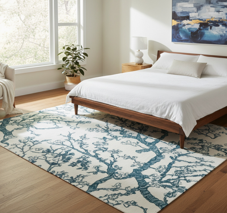 The Bedroom vinyl rug dark blue tree design bedroom vinyl rug transforms your bedroom into a serene oasis! With its captivating design and vibrant colors, this rug creates a cozy atmosphere that invites relaxation. Imagine stepping onto a soft surface that complements your decor while providing comfort and warmth. It's more than just a rug; it's a statement piece that reflects your style!