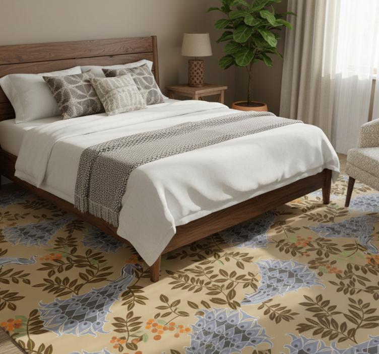 Bedroom vinyl rug in african gray peacock design