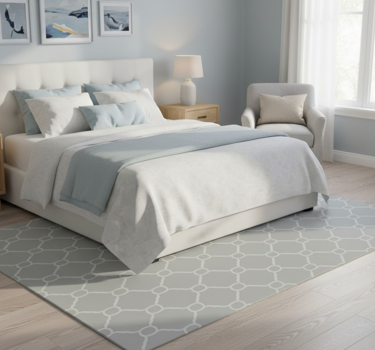 The Bedroom vinyl rug in gray geometric design bedroom vinyl rug is the perfect centerpiece for your bedroom decor. Its stylish design elevates the overall ambiance, creating a cozy and inviting atmosphere. Imagine stepping onto this beautiful rug each morning, feeling its soft surface underfoot as it ties your room together. This rug is more than just a decorative piece; it reflects your personality and adds warmth to your space!