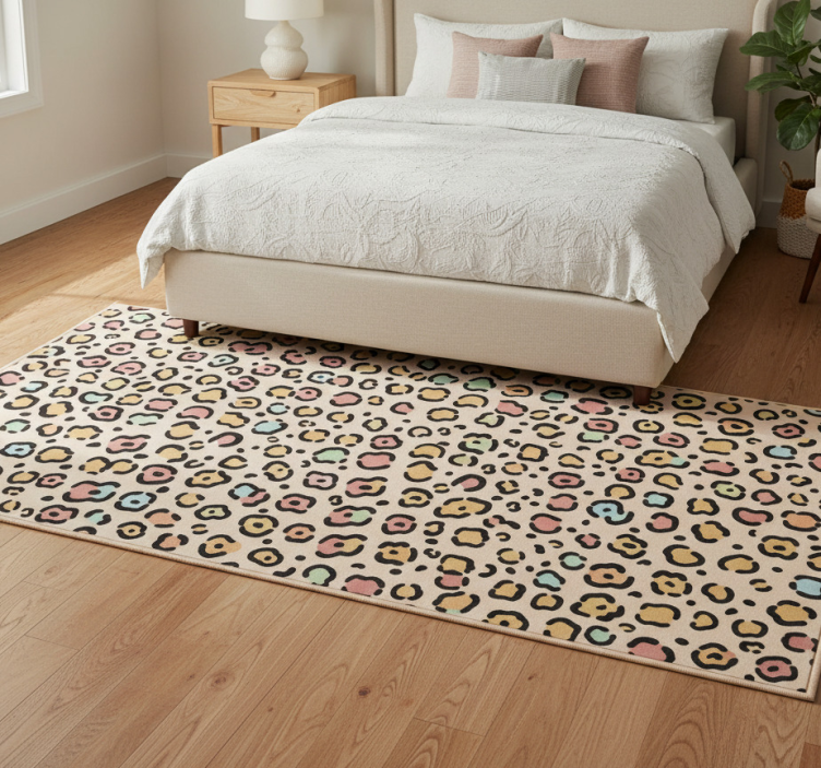 Bedroom vinyl rug in pastel leopard print