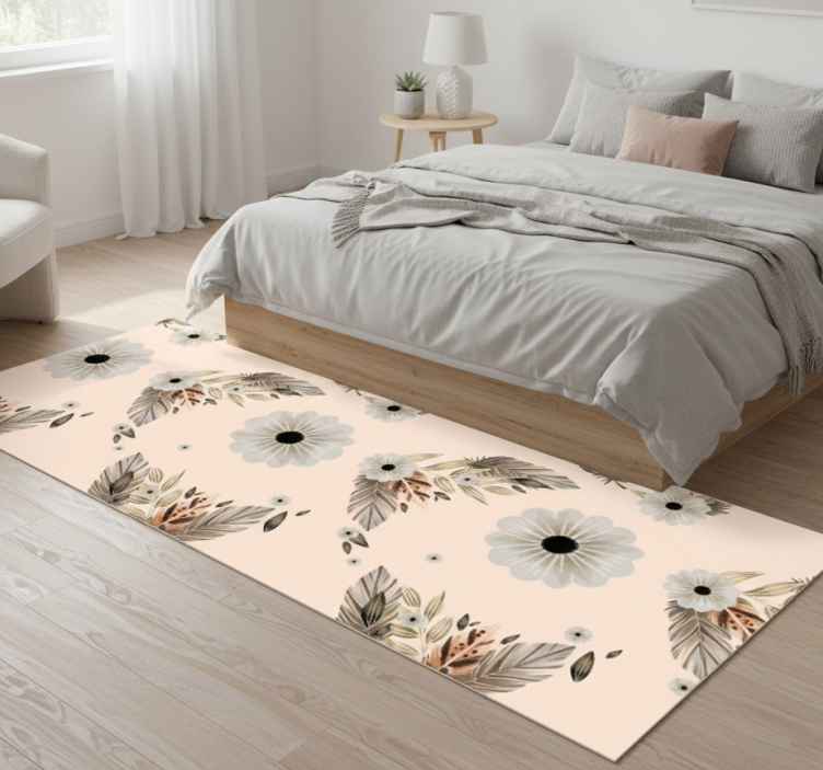 Bedroom vinyl rug in pink and black floral design