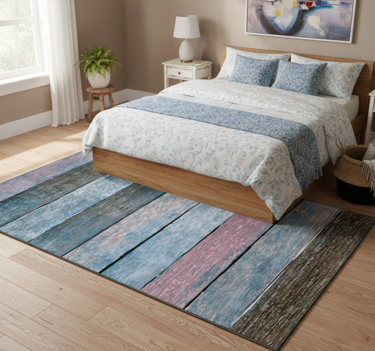 Bedroom vinyl rug in rustic colorful wood design