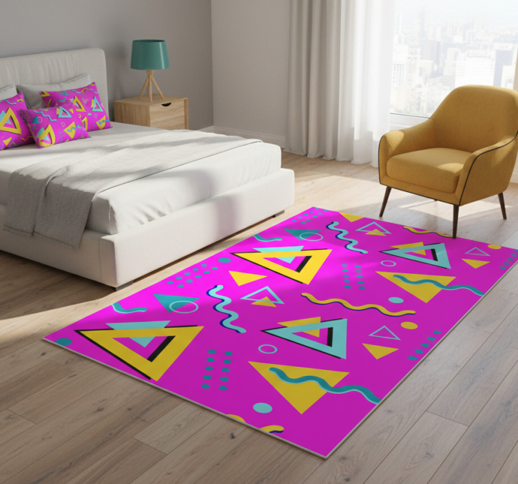 Bedroom vinyl rug memphis retro 80 geometric design