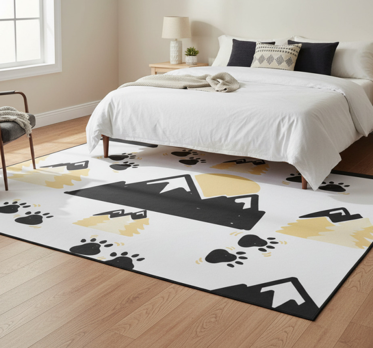The Bedroom vinyl rug mountain footprints on white bedroom vinyl rug is not just a decorative piece; it’s an expression of style! This rug effortlessly enhances your bedroom’s ambiance, bringing warmth and character to your space. Its captivating design serves as a conversation starter, inspiring a cozy and welcoming environment for you and your guests. Elevate your home decor with this charming rug that blends beauty and functionality seamlessly!