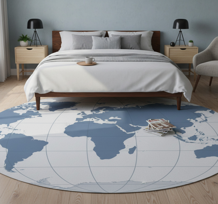 The Bedroom vinyl rug transparent world pacific bedroom vinyl rug is more than just a floor covering; it's a statement piece that brings global charm into your home. Imagine stepping onto a beautiful representation of the world every morning, inspiring travel dreams and adventures! This rug not only adds character to your bedroom but also protects your floors, making it an essential decor choice for those who appreciate style and functionality.