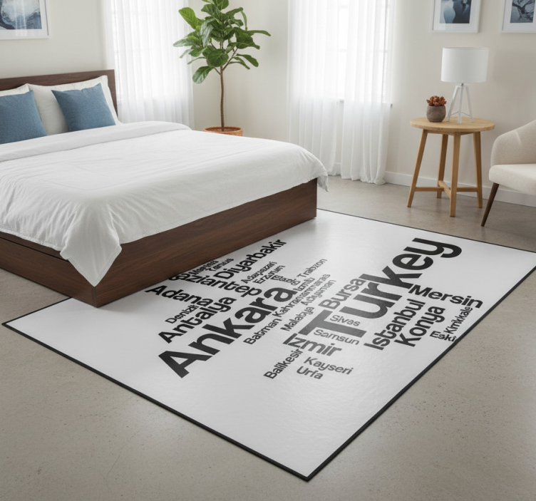 The Bedroom vinyl rug turkey decorative text bedroom vinyl rug is an inspiring addition to any room, effortlessly blending style and functionality. Its chic design acts as a focal point in your bedroom, making it a must-have for those who appreciate aesthetic beauty. With its vibrant colors and artistic patterns, this rug encourages creativity and adds a sense of personality to your space. Embrace the charm it brings and let your bedroom reflect your unique style!