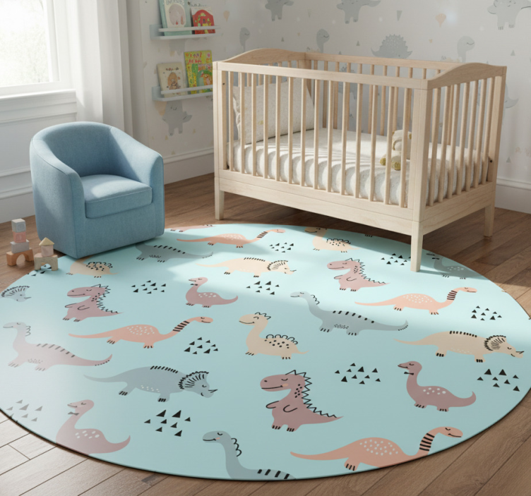 The Bedroom vinyl rug with blue background and dinosaurus bedroom vinyl rug is not just a rug; it's a statement piece that enhances your child’s room like no other! Its delightful dinosaur theme sparks imagination and creativity, making it an ideal choice for playrooms or bedrooms. You’ll love how it brings warmth and cheer to the space while being both stylish and functional.