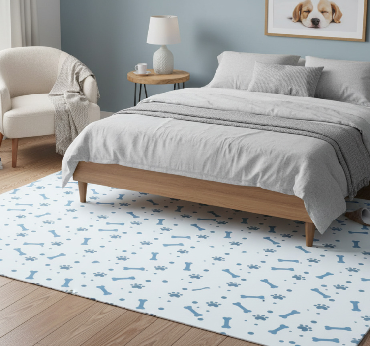 The Bedroom vinyl rug with blue dog bones pattern bedroom vinyl rug is more than just a decorative piece; it's a charming way to express your personality and add a playful touch to your space. Imagine stepping onto a soft, inviting surface that showcases your love for dogs while enhancing the overall aesthetic of your bedroom. This rug effortlessly combines functionality and fun, making it a must-have for those looking to elevate their home decor!