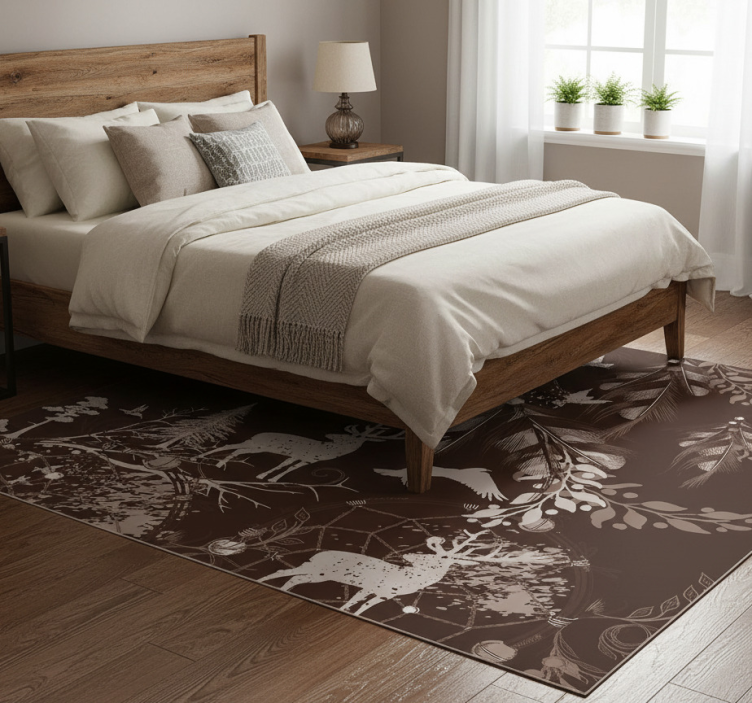 Bedroom vinyl rug with decorative deer design