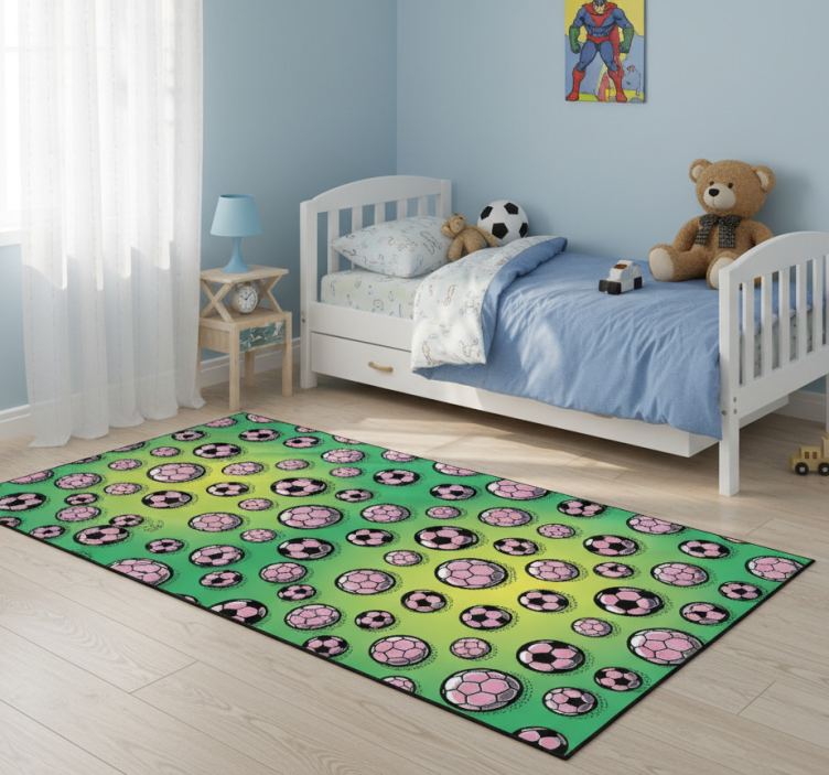 Reference: R24276Transform your space with our stunning Bedroom vinyl rug with gradient football field design, where vibrant colors meet a dynamic football field aesthetic! This unique design combines a playful gradient with the essence of the game, bringing a lively touch to any bedroom. Crafted to impress, this rug is not only visually captivating but also features scratch resistant, fireproof, and anti-allergic properties, ensuring both style and safety for your family.
