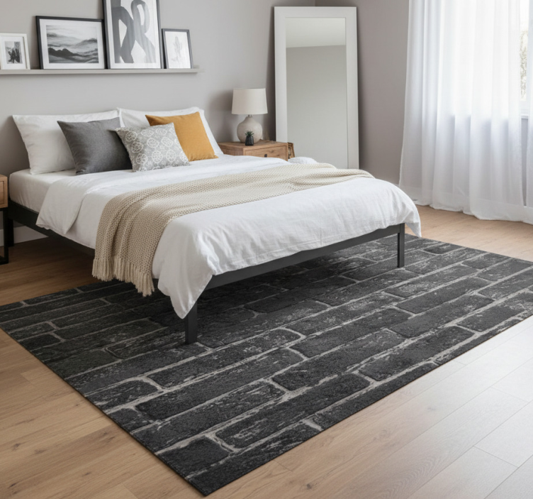 Bedroom vinyl rug with grey stone brick design