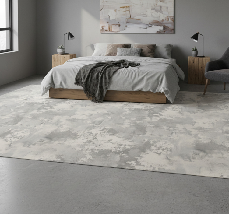 Bedroom vinyl rug with industrial concrete look