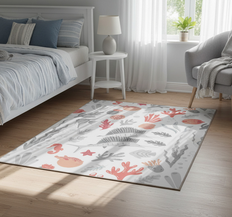 Choosing the Bedroom vinyl rug with marine life design bedroom vinyl rug elevates your bedroom's aesthetic while providing warmth and comfort underfoot. This enchanting rug invites a sense of tranquility and joy, making your personal space a serene retreat. Let the marine theme inspire relaxation and creativity as you step onto its soft surface each day!