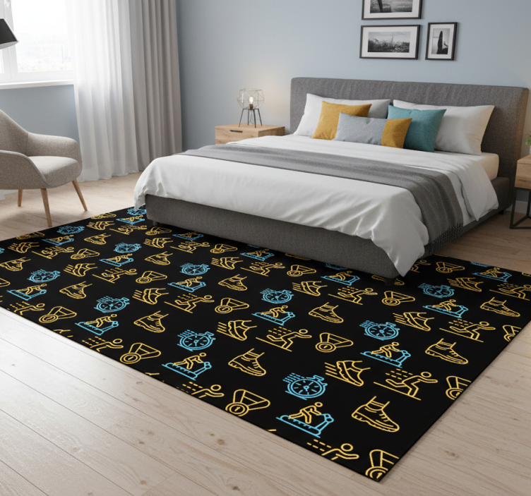 Bedroom vinyl rug with neon running vector icons