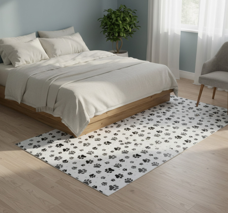 Bedroom vinyl rug with pet paw print design