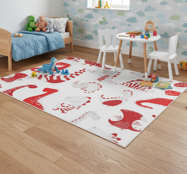 Enhance the ambiance of your room with the Bedroom vinyl rug with red dinosaur sketches bedroom vinyl rug. This charming rug serves as a perfect centerpiece, sparking joy and creativity in any space. Its delightful dinosaur motifs can inspire imagination, making it an ideal choice for kids' rooms. Elevate your décor effortlessly and create a vibrant atmosphere that resonates with fun and adventure!