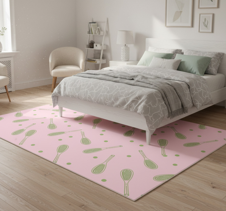 Elevate your interior design with the Bedroom vinyl rug with seamless tennis racket design bedroom vinyl rug. Its artistic flair and playful theme not only brighten up your room but also invite a sense of enthusiasm and energy. Perfect for creating a lively atmosphere, this rug serves as a focal point that sparks conversation and admiration among guests!