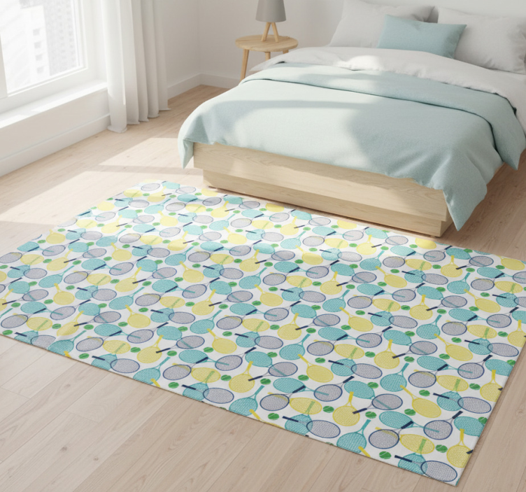 Bedroom vinyl rug with vibrant racket patterns