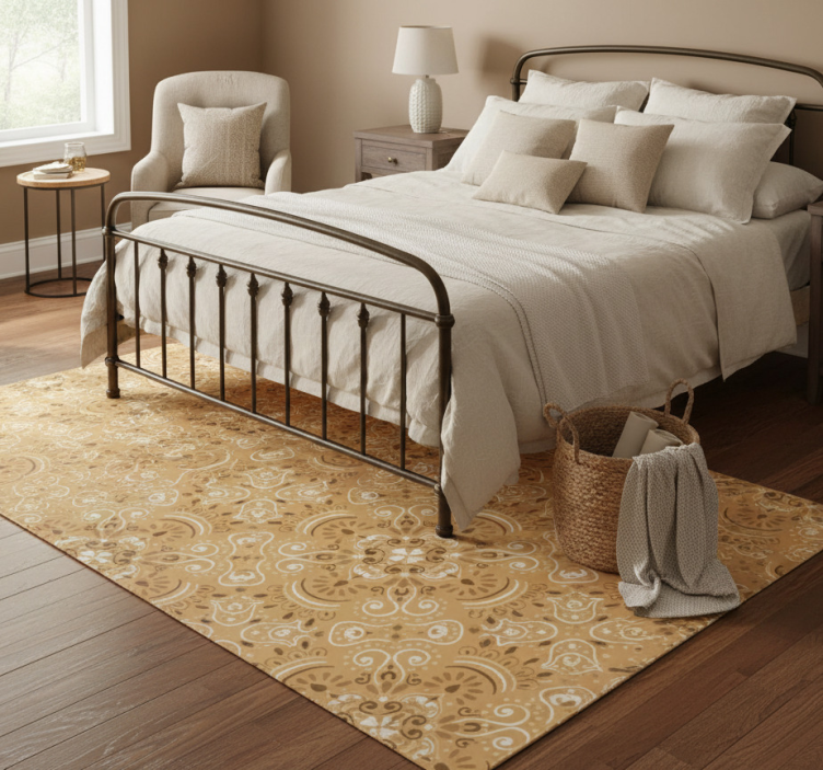 Reference: R24183Transform your space with our stunning Bedroom vinyl rug with vintage beige design! This elegantly crafted piece features a beautiful vintage beige pattern that effortlessly blends charm and sophistication. The rug is designed to bring warmth and texture to your bedroom while being easy to maintain. Its anti-slip feature ensures safety, while thermal isolation keeps your feet cozy. Enjoy a high-quality product at a low price without the hassle of installation!