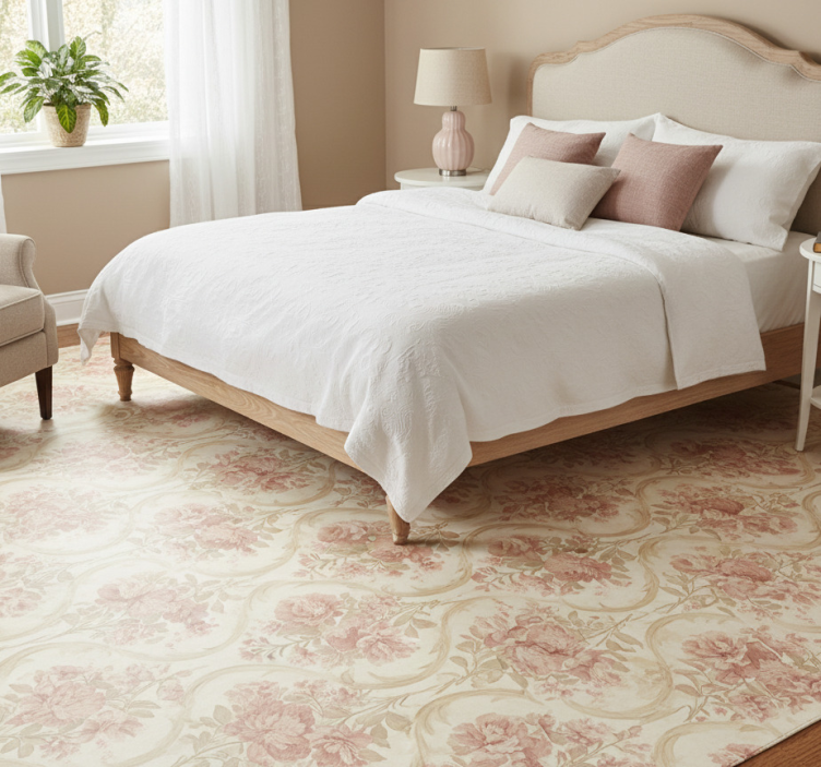 The Bedroom vinyl rug with vintage light washed flowers bedroom vinyl rug is an excellent choice for enhancing your bedroom's ambiance. Its charming floral design creates a warm and inviting atmosphere, making your space feel more cozy and personalized. By incorporating this rug into your decor, you can easily elevate the overall aesthetic of your room and create a delightful retreat.