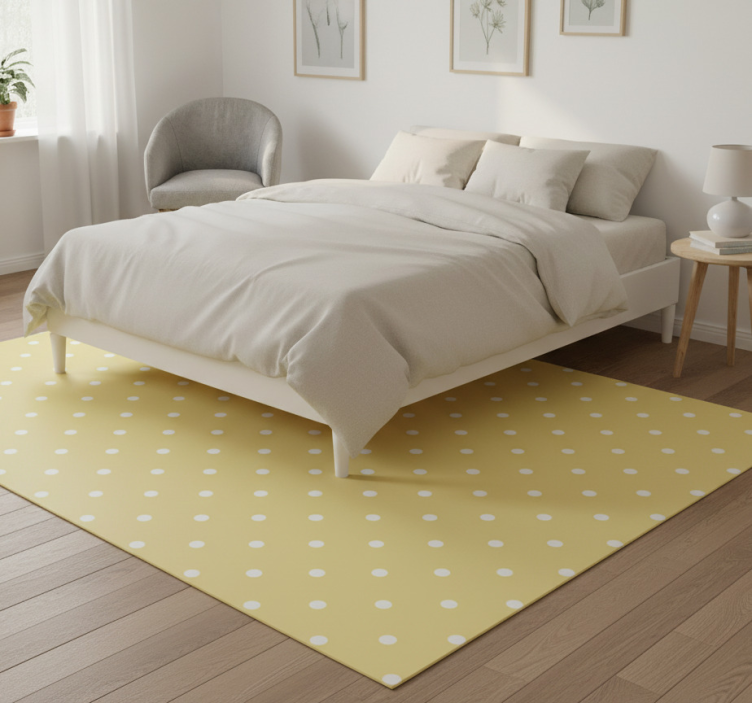 Bedroom vinyl rug with yellow polka dots